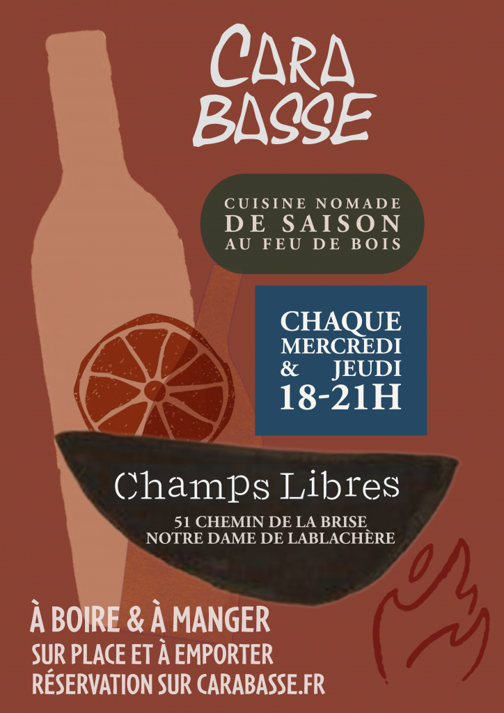 Carabasse passe en mode nomade et nous installons notre remorque foodtruck à Champs Libres @ Lablachère à partir du 15 avril les mercredi et jeudi !