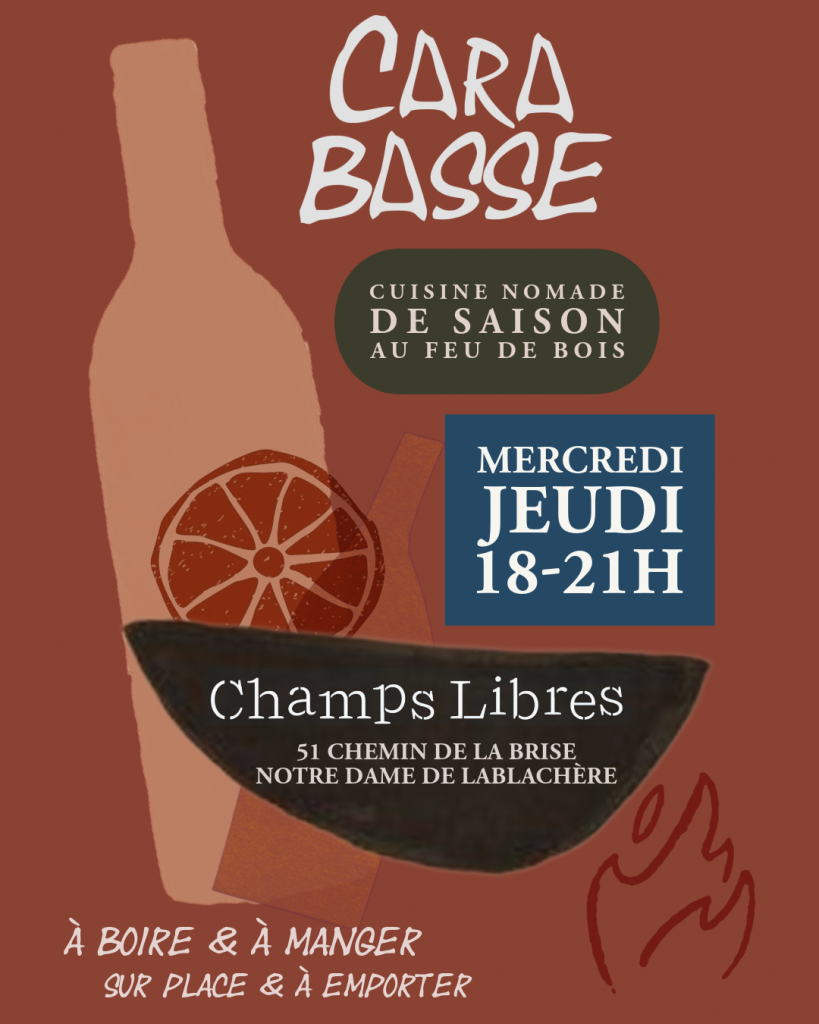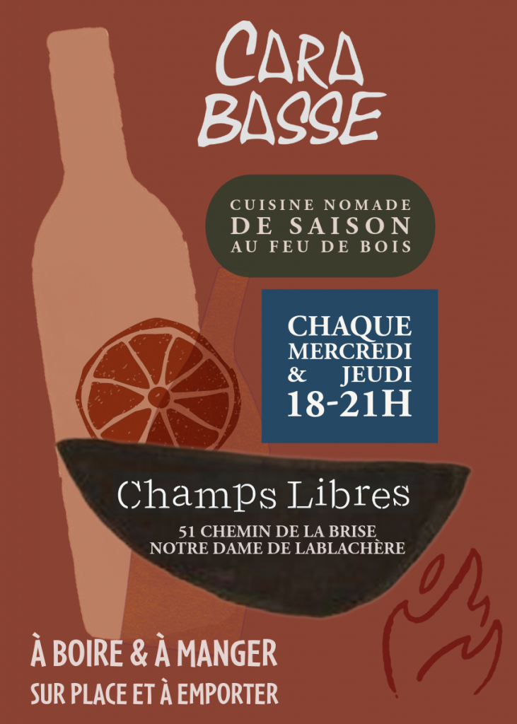 Carabasse passe en mode nomade et nous installons notre remorque foodtruck à Champs Libres @ Lablachère à partir du 15 avril les mercredi et jeudi !